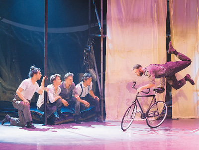 開幕式上,加拿大雜技表演藝術家帶來了劇目《馬戲機器》,劇中6位角色各有所長,他們憑借精湛的技藝,巧妙駕馭蹺蹺板、雜耍棍、架子鼓乃至浴巾等各式道具,表演既洋溢著詩意,又不失詼諧幽默與風趣。
