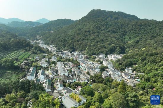 10月11日拍攝的桂花樹簇擁的杭州滿覺隴一帶(無人機照片)。