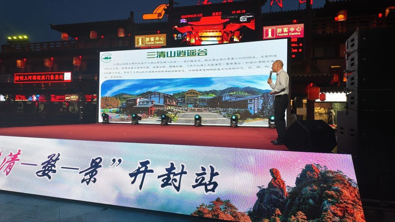 6月15日晚,“清-婺-景”“婺-望-三清”主題旅游線路推介會走進河南省開封市清明上河園景區。本次推介會由三清山景區,婺源鄉村文旅,婺女洲景區,葛仙村景區,逍遙谷景區等聯合推介。三清山文旅推介會首次進入旅游園區,為現場數千游客送上一場來自上饒旅游的精神盛宴。