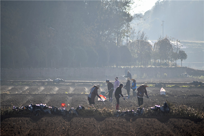 12月5日,在鉛山縣永平鎮老李家萬畝蔬菜基地,村民正在播種蔬菜。近年來,鉛山縣采用“龍頭企業+村集體經濟合作社+農戶”的模式,利用閑田種植花椰菜、包菜、大蒜、白菜等時令蔬菜,努力擴大冬種面積,既保障了菜籃子供應,又幫助農民拓展增收致富渠道。