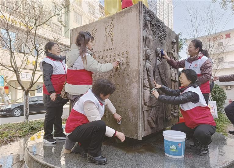3月5日是學雷鋒紀念日,為弘揚雷鋒精神,向雷鋒致敬,我市各地紛紛開展形式多樣的志愿活動,大力踐行社會主義核心價值觀,在全市營造良好的“學雷鋒”氛圍。圖為3月3日上午,市志愿者協會志愿者和市二中的學生志愿者在清洗雷鋒塑像。