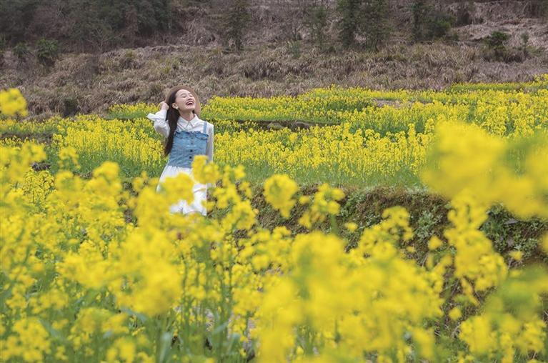 “雨霽風光,春分天氣。千花百卉爭明媚。”近日,在廣信區望仙鄉葛路村高山梯田路段,油菜花爭相綻放,將梯田裝扮得格外靚麗,引得四方游人紛紛前來。行人漫步花間,不由得放慢腳步,放松身心,打開鏡頭,收集著這個春天的溫柔與浪漫。辜承勇 記者 鐘芷涵 攝影報道