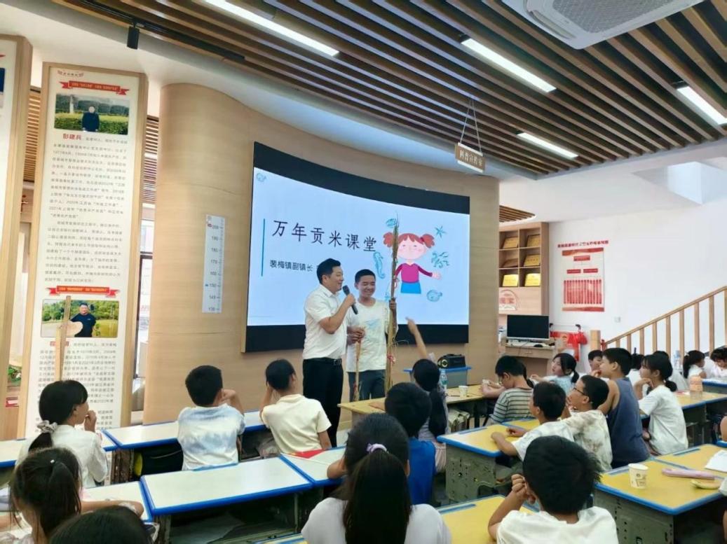 隨后,民俗專(zhuān)家曹建金帶來(lái)了“萬(wàn)年貢米課堂”,從歷史淵源、獨(dú)特品質(zhì)到產(chǎn)業(yè)振興,深入淺出地講述了萬(wàn)年貢米的文化價(jià)值。孩子們聽(tīng)得津津有味,不僅增長(zhǎng)了知識(shí),更增強(qiáng)了對(duì)家鄉(xiāng)文化的認(rèn)同感。